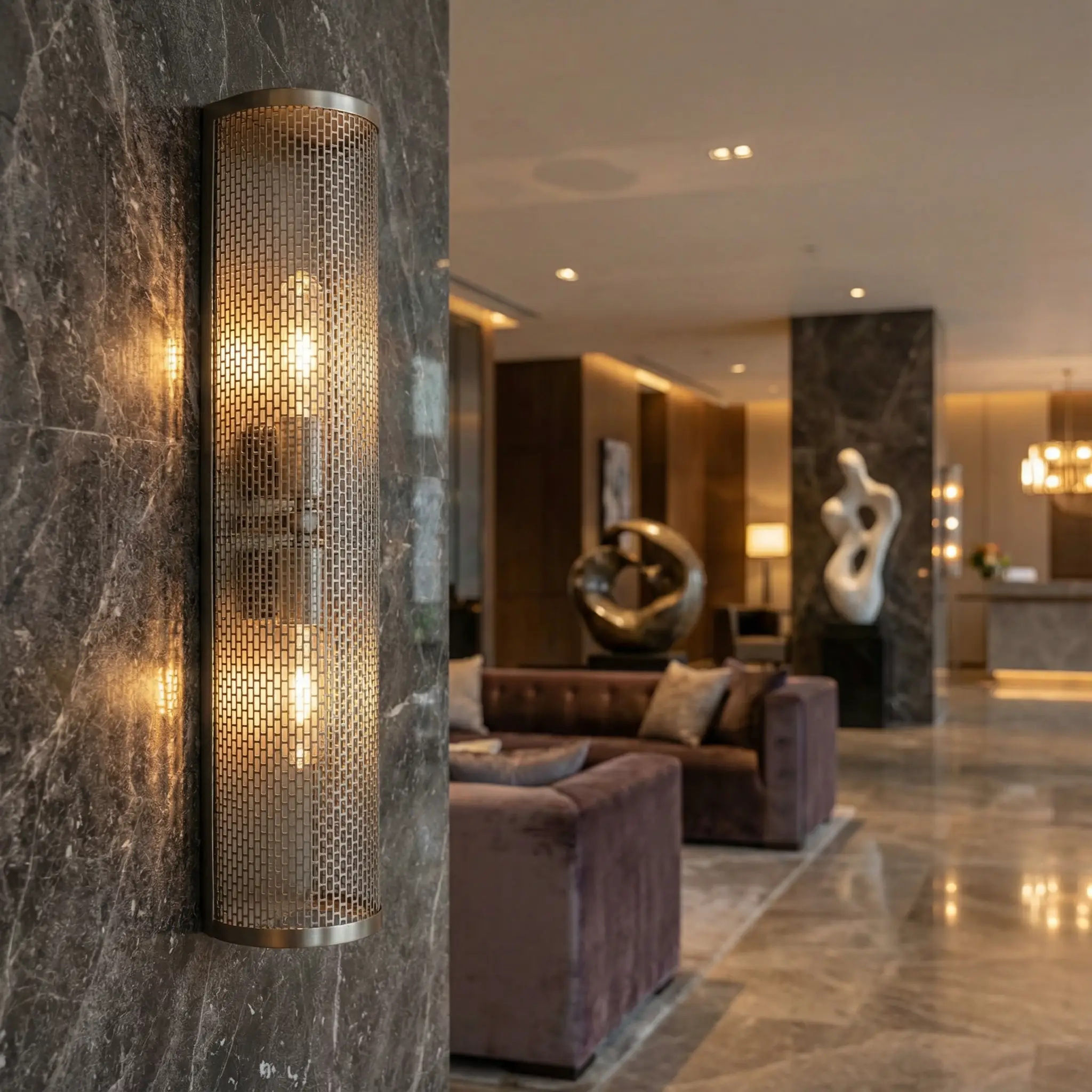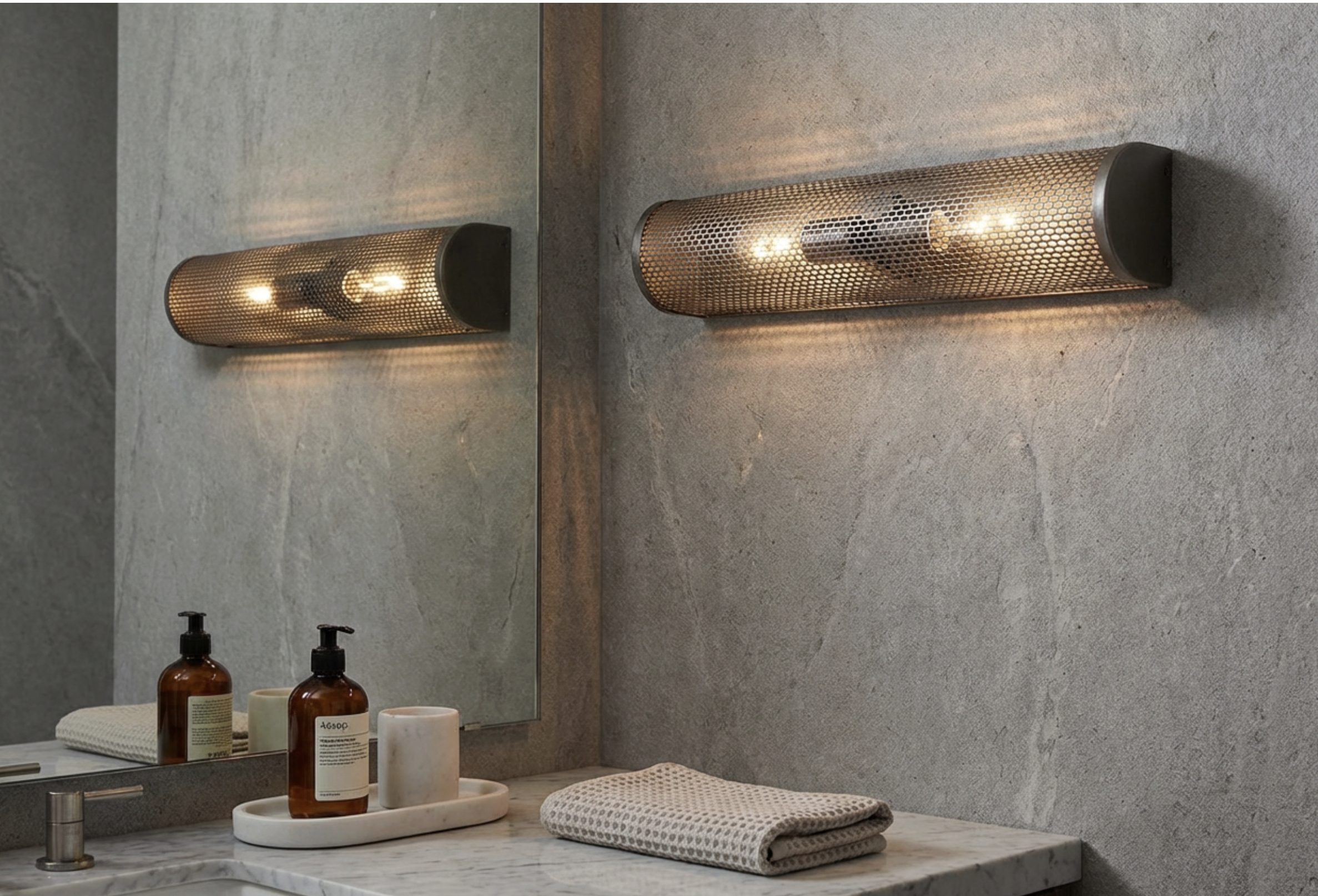 Bronze Sconce with Metal Perforated Shade