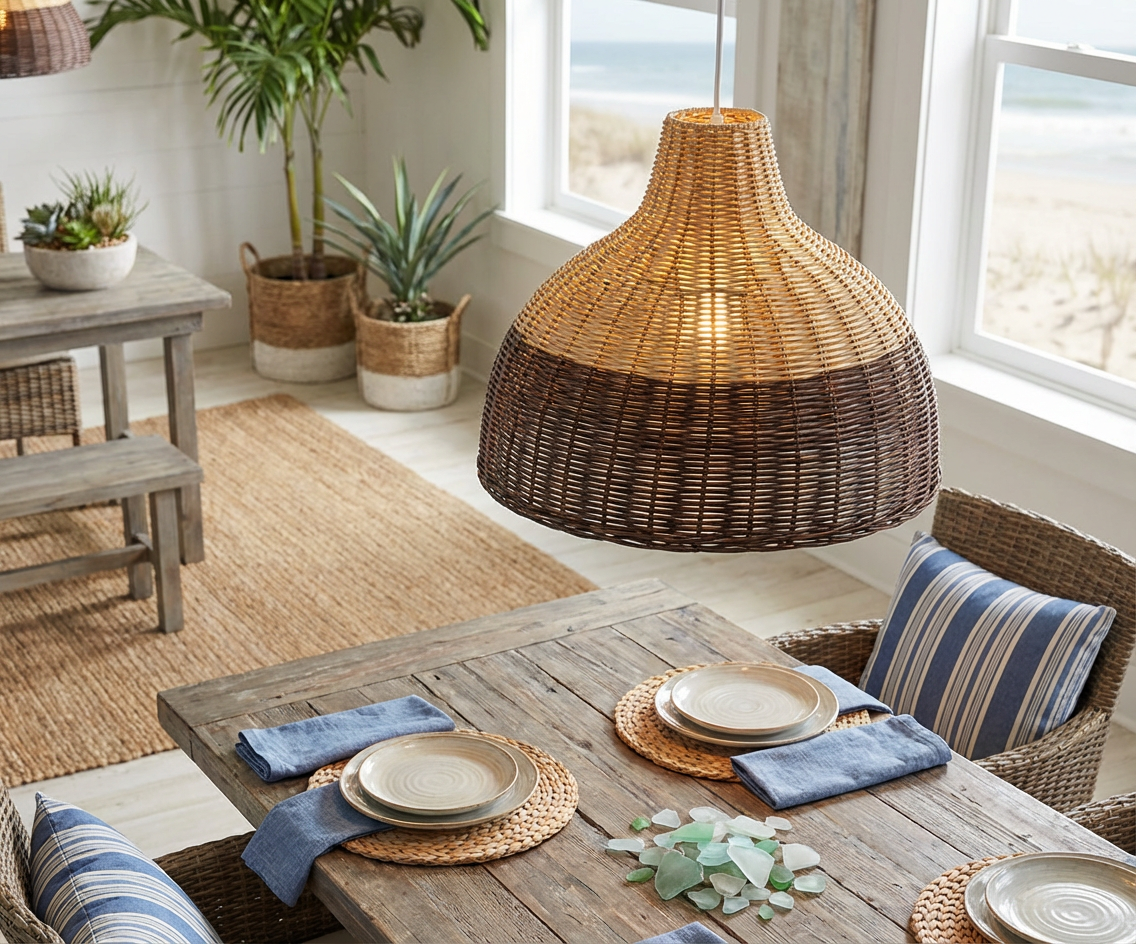Coastal Rattan 14″ Wide Two-Tone Pendant Light