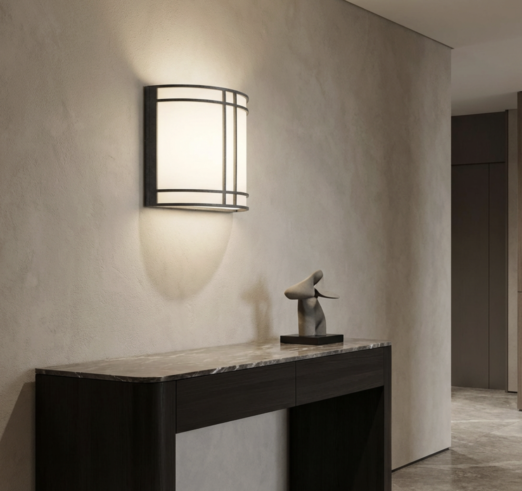 The textured slate metal frame offers decorative detail to the design of this wall sconce. The design can be conveniently mounted in any area for attractive personality. The design comes from the Possini Euro Design brand, and offers the perfect finishing touch for a sophisticated, contemporary bathroom, hallway, or living areas, bringing both practicality and polished elegance to your home.