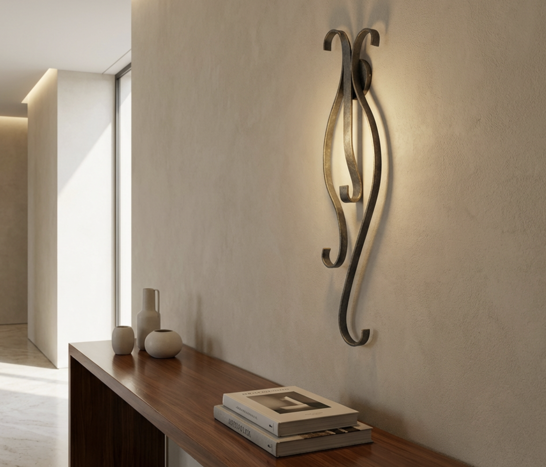 WALLMOUNT-METAL ONION CURL IN SMOKESTONE WITH GOLD FINISH
